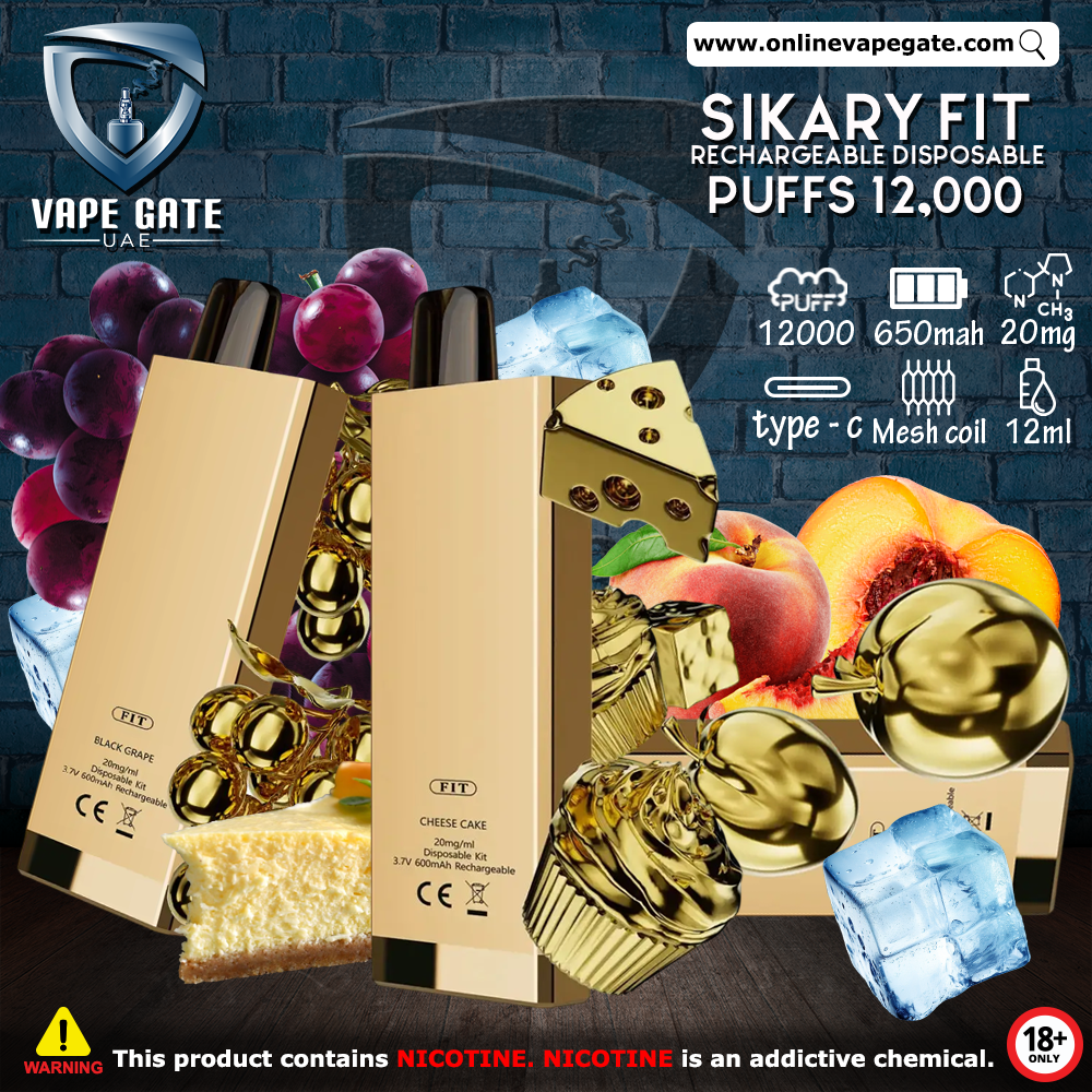 Sikary Fit Disposable Vape (12,000 Puffs) available to order online from Vape Gate UAE with a unique Delivery service in UAE, Abu Dhabi, Dubai, Al Ain, Ras Al Khaimah, Ajman, Sharjah, Ruwais.