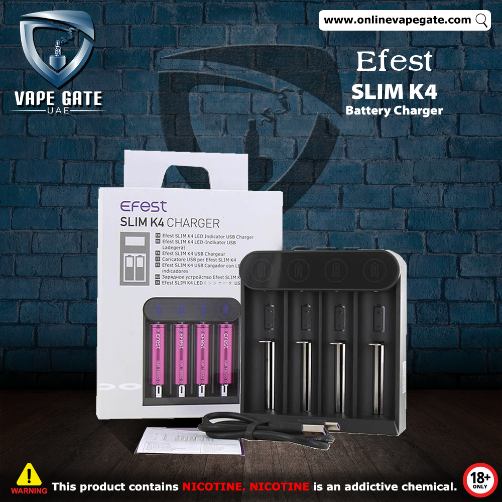 Efest LUSH Q4 4 Bay Battery Charger available to order Online from Vape Gate UAE with a unique Delivery service in UAE, Abu Dhabi, Dubai, Al Ain, Ras Al Khaimah, Ajman, Sharjah, Ruwais