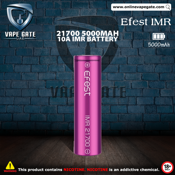 EFEST 21700 5000MAH 10A IMR BATTERY Battery available to order Online from Vape Gate UAE with a unique Delivery service in UAE, Abu Dhabi, Dubai, Al Ain, Ras Al Khaimah, Ajman, Sharjah, Ruwais Â