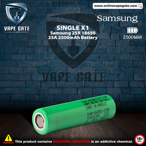 Samsung 25R 18650 20A 2500mAh Battery available to order Online from Vape Gate UAE with a unique Delivery service in UAE, Abu Dhabi, Dubai, Al Ain, Ras Al Khaimah, Ajman, Sharjah, Ruwais Â