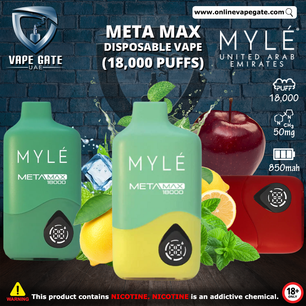 Ready to experience next-level vaping? Shop Myle Meta Max Disposable Vape (18,000 Puffs) online in Dubai now and enjoy long-lasting flavor, fast delivery, and premium satisfaction.