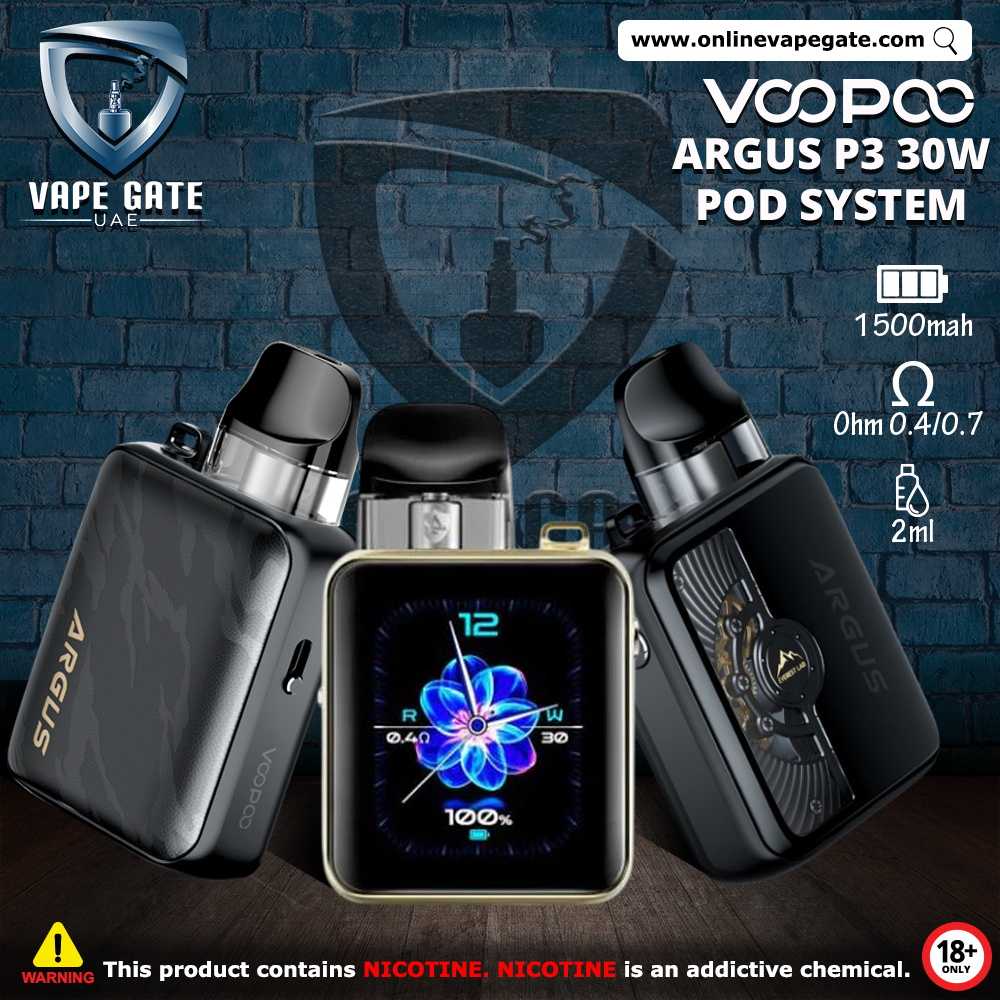 VOOPOO ARGUS P3 30W POD SYSTEM (1500mAh) is available to order Online from Vape Gate UAE with a unique Delivery service in UAE, Abu Dhabi, Dubai, Al Ain, Ras Al Khaimah, Ajman, Sharjah, Ruwais