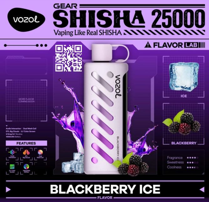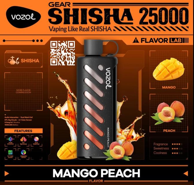 VOZOL Gear Shisha 25000 Puffs Dual Mode Disposable Vape offers a premium vaping experience with a long-lasting 1000mAh battery, 25ml e-liquid capacity, and a strong 5% nicotine hit. Choose between Eco Mode (25,000 puffs) and Power Mode (18,000 puffs), with over 30 flavors and customizable airflow. Featuring dual mesh coils for enhanced flavor, a 2.1-inch smart display, and interactive touch for added convenience, it’s perfect for DTL vaping enthusiasts seeking thick vapor and satisfying clouds.