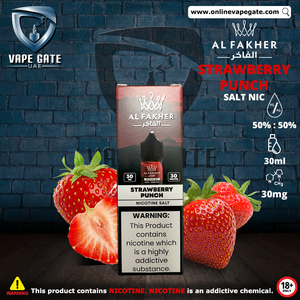 Al Fakher - Strawberry Punch Saltnic 30ml This vibrant flavour brings together the juicy sweetness of ripe strawberries with a tangy punch, creating an irresistible nicotine experience that's both refreshing and satisfying.
