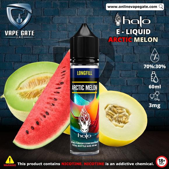 Halo Arctic Melon - E-Liquid is an ice-cold explosion of freshness that combines the sweet and juicy flavour of melon with intense and invigorating mint. This perfectly balanced blend offers a refreshing and fruity vapour experience, ideal for lovers of fresh and thirst-quenching sensations.