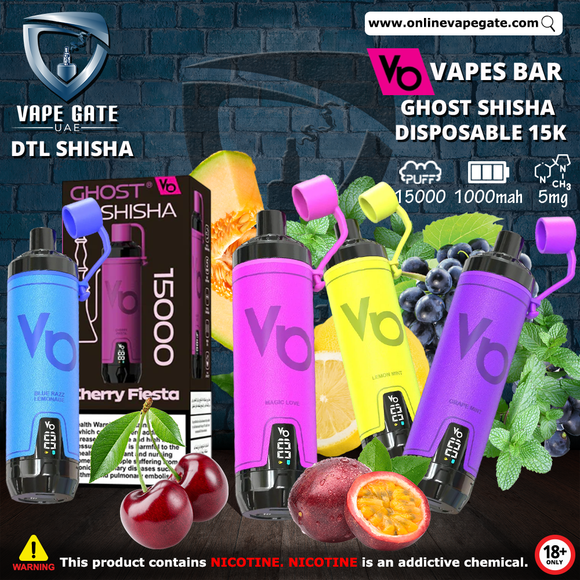 Vapes Bar Ghost Shisha Disposable Vape (15,000 PUFFS) is available to order Online from Vape Gate UAE with a unique Delivery service in UAE, Abu Dhabi, Dubai, Al Ain, Ras Al Khaimah, Ajman, Sharjah, Ruwais. Best Vape Disposable 2025.