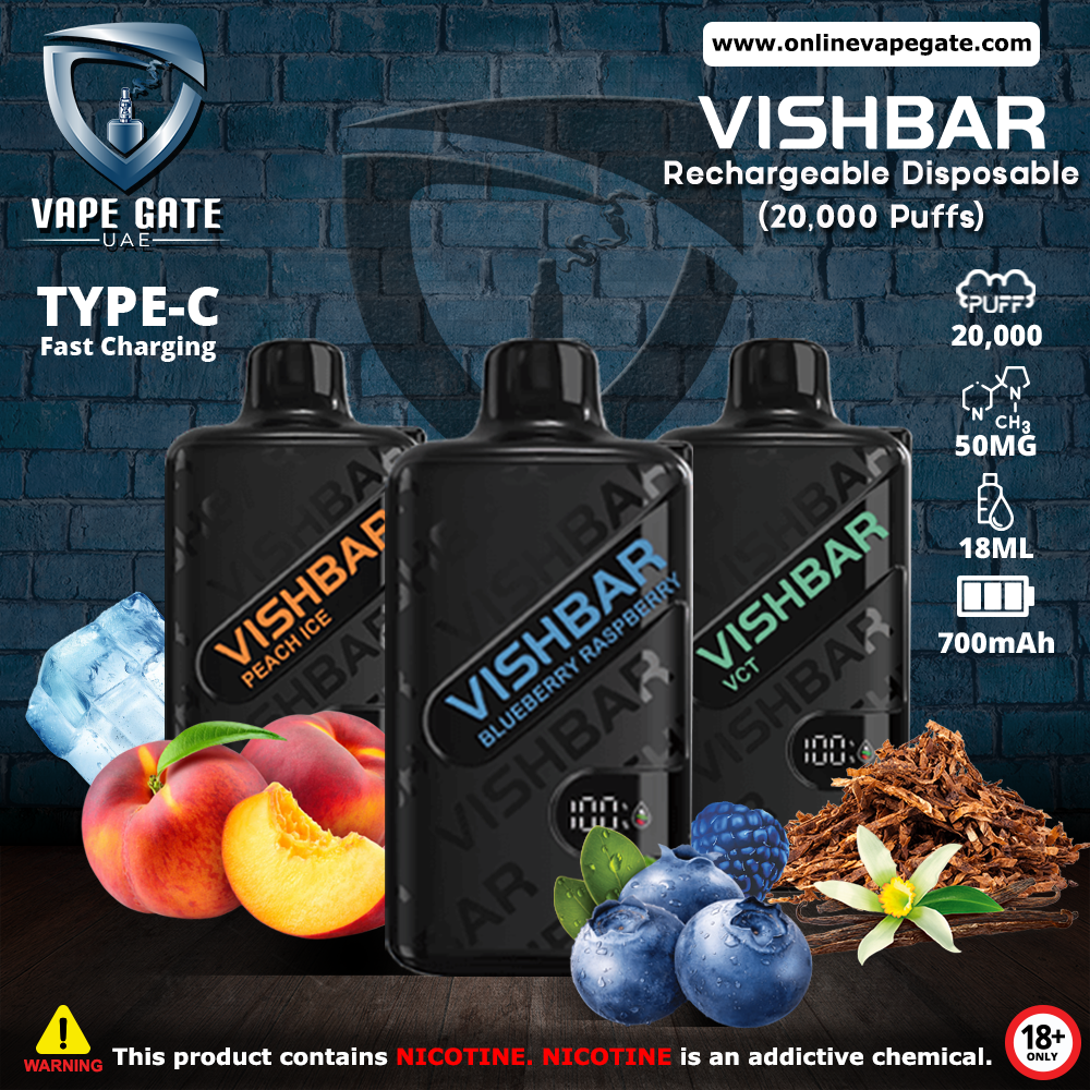 Vishbar Weekly Rechargeable Disposable Vape (20,000 Puffs) is available in the best vape shop in Dubai to order vape Online from Vape Gate UAE with the Same Day vape Delivery service in Dubai, Abu Dhabi, Al Ain, Ras Al Khaimah, Ajman, Sharjah, Ruwais.