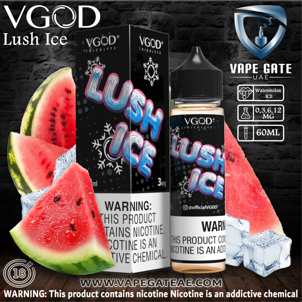 VGOD Lush Ice is a Delicious Burst of Fresh Watermelon on the Inhale with sweet undertones of Mixed Melons and smooth Menthol on the Exhale, providing a Smooth and Fruity All-Day Vaping Experience by VGOD Lush Ice!