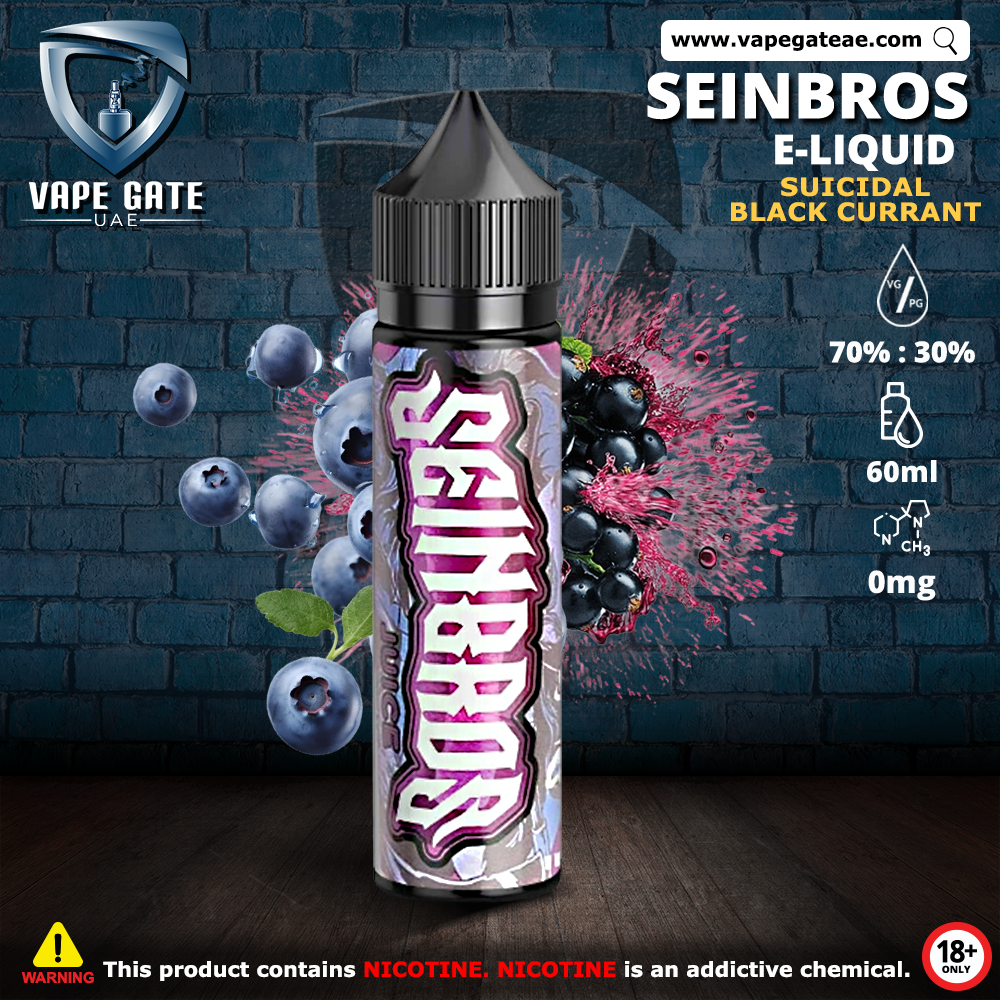 Whether you are looking for Suicidal Blackcurrant 60ml E Liquid 0mg Nicotine by Seinbros or other flavor made by Seinbros here at Vape Gate UAE we can Provide you a massive collection of E liquid and Saltnic with best prices in UAE, Same Day Delivery in Abu Dhabi and next Day Delivery to Dubai, Sharjah, Ajman, Ras Al Khaimah, Al Ain & Ruwais .