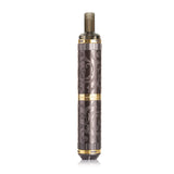 YIHI SXmini MK Pro Class Kit, featuring an integrated 700mAh battery, aluminum alloy chassis, and draw-activated firing mechanism. Holding up to 2mL of eJuice within the pod, the MK Pro Class Kit offers a replaceable coil, accepting 0.8ohm or 1.0ohm. In addition, the aluminum and brass construction is intricately engraved, offering visual appeal. Utilizing draw-activated firing mechanisms, the MK Pro Class Kit eliminates the need for any buttons, leaving the detailed exterior uninterrupted.