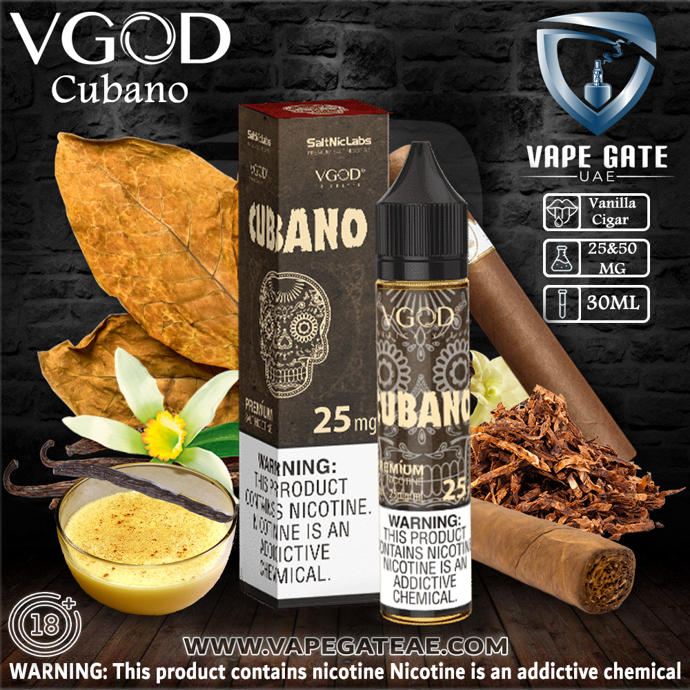 VGOD Cubano Salt Nic is mainly a tobacco flavored blend of nicotine salt, borrowing hints of rich creamy vanilla and smooth smoky tobacco notes to create a flavor for those trying to quit analog.