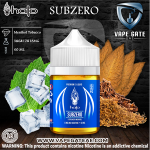 Halo Subzero Menthol - E Liquid A nic salt e-liquid that exhibits an intense, cool mint effect more powerful than any of our other menthol flavors. This salt version has a longer-lasting nicotine effect, low vapor production, and a glacier-fresh finish, so you can chill with the frigid flavor of SubZero all day.Â