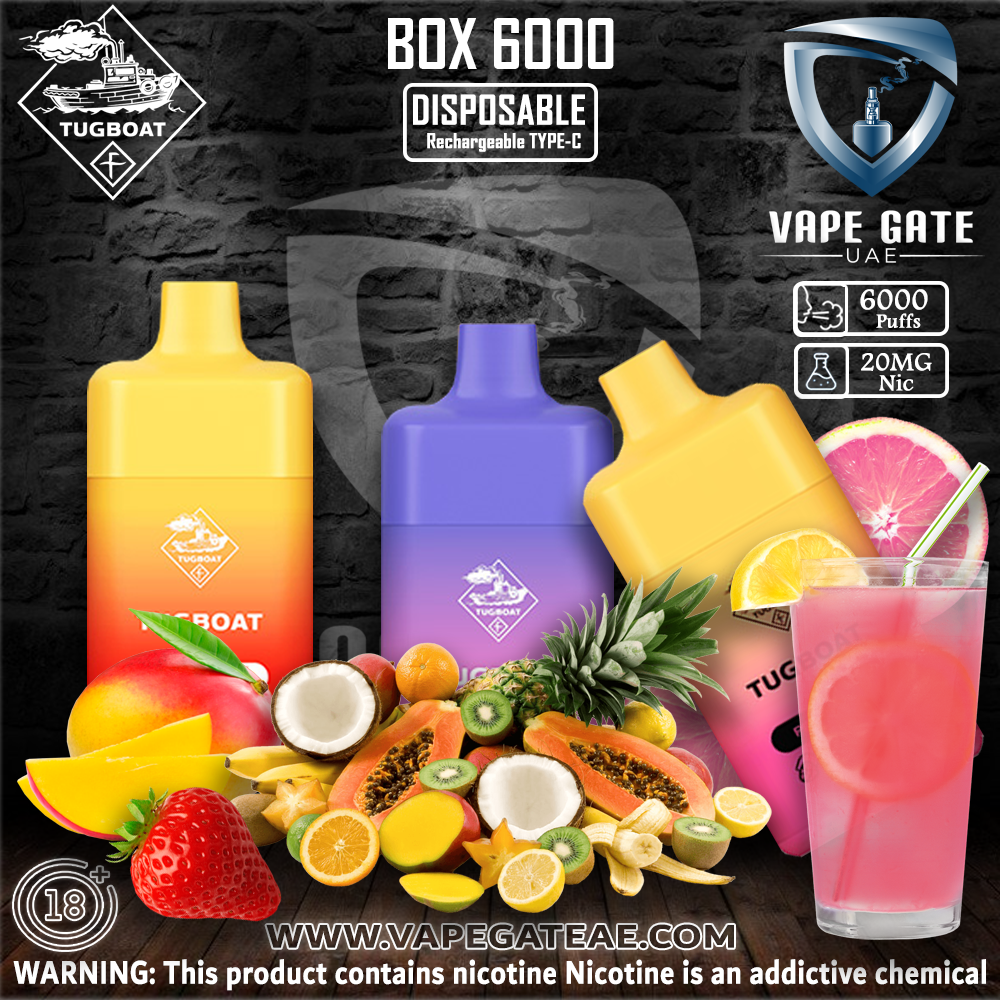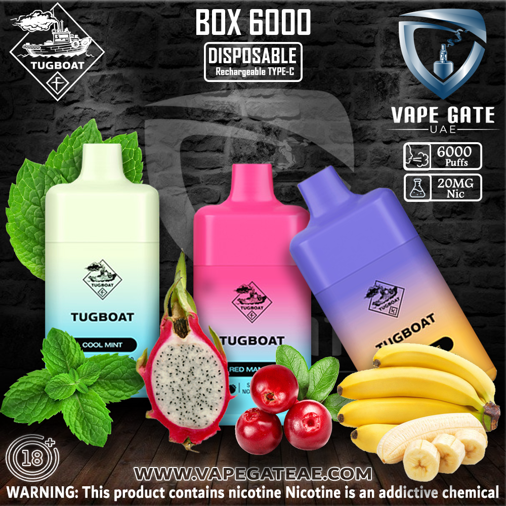 TUGBOAT - BOX Disposable Vape Device (6000 Puffs) available to order Online from Vape Gate UAE with a unique Delivery service in UAE, Abu Dhabi, Dubai, Al Ain, Ras Al Khaimah, Ajman, Sharjah, Ruwais tug boat