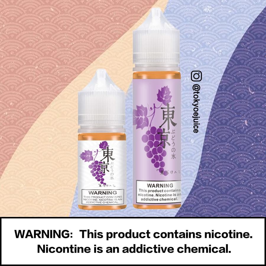 TOKYO GRAPE E Liquid is killer flavor that is so real and fruity-delicious that you almost want to chew it and blow a menthol! Experience the freshening blast of ice with a perfect of tantalizing and real purple grape.