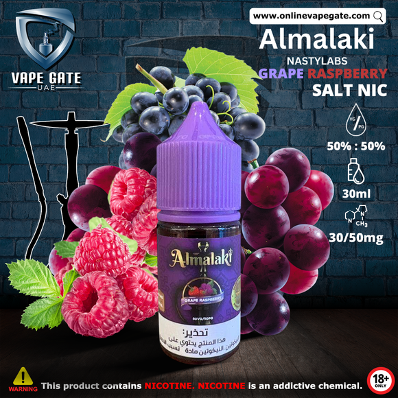 Almalaki Grape Raspberry E-liquid is a fruit blend with a combination of ripe grapes mixed with fresh sweet raspberry, were chosen to get the fruity and earthy taste for a perfect balance of sweet and freshness flavor.