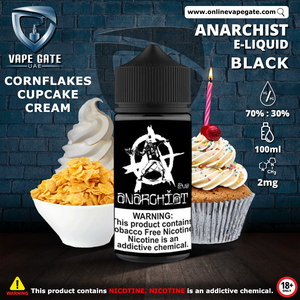 Black 100ml eLiquid by Anarchist is a delightful twist of fruit pebbles cupcake with frosted flakes sprinkled on top. Anarchist Black is an ejuice that is a perfect combination of sweet white sugar with vanilla crème frosting. It is like eating dessert while vaping! Vapers who have sweet tooth will want to vape this all day and enjoy the flavor of soft cake.