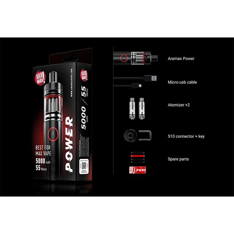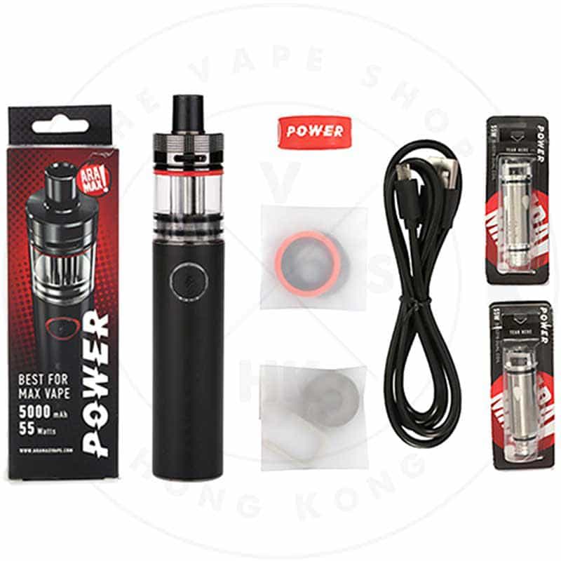 The ARAMAX Power Kit is coming! It consists of a massive 5000mAh built-in battery and a 5ml sub ohm tank, bringing long-lasting battery life and fantastic cloud flavor to you. The constant 55W output provides a stable performance too. With child lock design, you will enjoy a safe vaping freely. The tank also adopts top refill and top adjustable airflow system. You will definitely fall in love with it!Â
