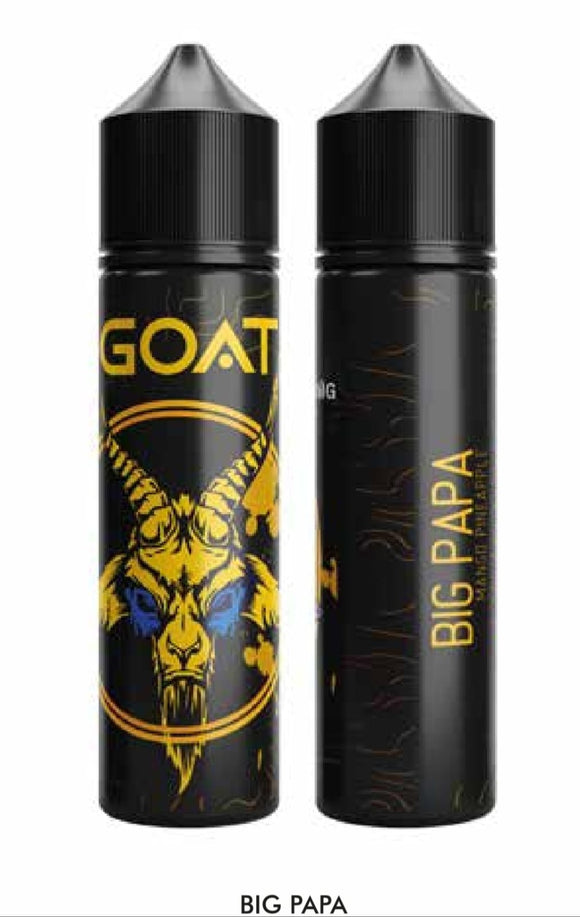 BIG PAPA - GOAT ELIQUID The refreshing sweetness of mangoes perfectly complements the vibrant tartness of pineapples, resulting in a delectable vape that tantalizes your taste buds.