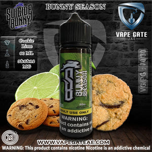 Whether you are looking for BUNNY SEASON - SUICIDE BUNNY 60ML E-LIQUID or other E liquid made by Suicide Bunny here at Vape Gate UAE we can Provide you a massive collection of Ejuices and Saltnic with best prices in UAE, Same Day Delivery in Abu Dhabi and next Day Delivery to Dubai, Sharjah, Ajman, Ras Al Khaimah, Al Ain & Ruwais .