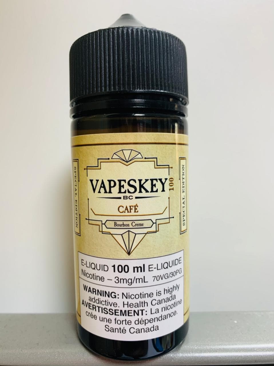 Cafe By Vapeskey E-juice 100ml. This E-liquid flavor takes a super-refined Bourbon and mixes it up with heavy cream and coffee mix to bring you Vapeskey Cafe! The original Vapeskey e-liquid was already delicious, now get ready for a coffee twist! Therefore, you will enjoy this flavor.