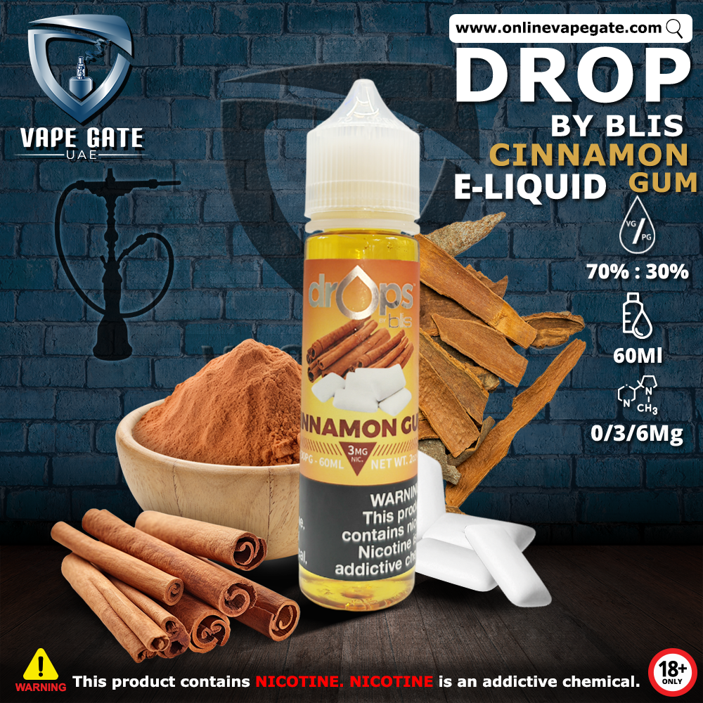 Cinnamon Gum 60ml E juice by Drop by Blis available to order Online from Vape Gate UAE with a unique Delivery service in UAE, Abu Dhabi, Dubai, Al Ain, Ras Al Khaimah, Ajman, Sharjah, Ruwais