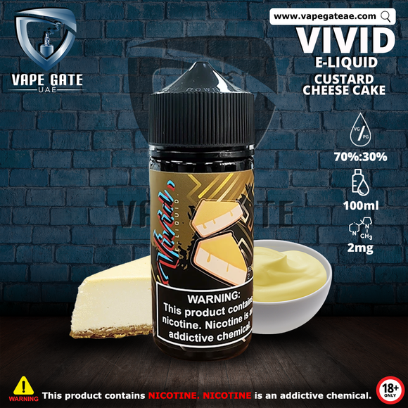 CUSTARDÂ CHEESECAKE - VIVID ELIQUID 100ML available for Same Day Vape Delivery to Dubai, Abudhabi, and Next Day vape Delivery to Sharjah, Ajman, Ras Al Khaimah, Al Ain & Ruwais. with the best vape price in Dubai.