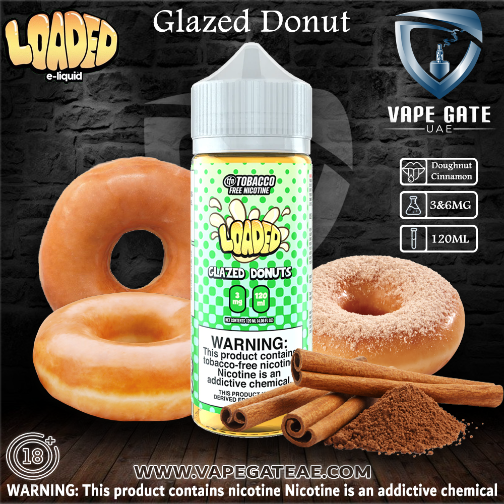 When you first inhale Glazed Donuts by Loaded E-Liquid, you will swear that you have just taken a bite out of a puffy, warm doughnut as the flavor of this savory baked good coats your tongue. As the taste envelops your palate, the sweet vanilla glaze will engulf your sweet tooth in the best way imaginable. On the exhale, a touch of cinnamon will take your taste buds to a whole new level. This vape juice was designed for those who can appreciate soft sugary glazed doughnuts, hot and fresh, right out of the oven.