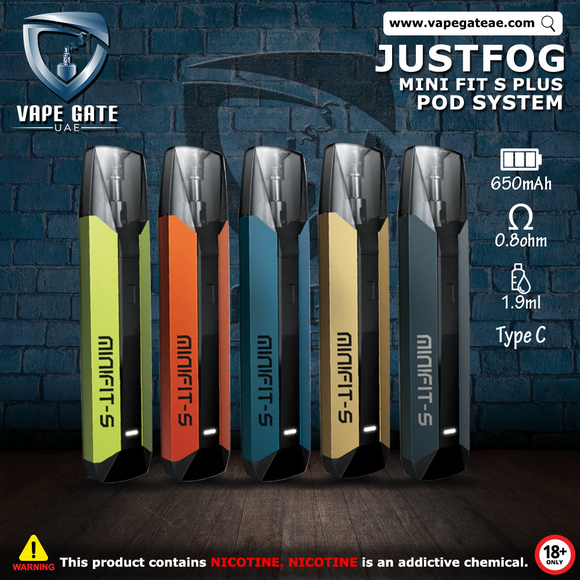 JUSTFOG MINI FIT S PLUS POD KIT 650MAH is available to order Online from Vape Gate UAE with a unique Delivery service in UAE, Abu Dhabi, Dubai, Al Ain, Ras Al Khaimah, Ajman, Sharjah, Ruwais