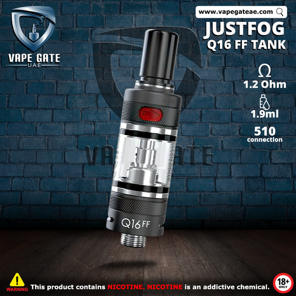 Justfog Q 16 FF Tank available to order Online from Vape Gate UAE with a unique Delivery service in UAE, Abu Dhabi, Dubai, Al Ain, Ras Al Khaimah, Ajman, Sharjah, Ruwais