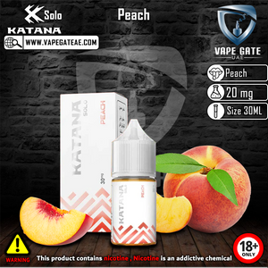Katana Solo - Peach Saltnic is available to order Online from Vape Gate UAE with a unique Delivery service in UAE, Abu Dhabi, Dubai, Al Ain, Ras Al Khaimah, Ajman, Sharjah, Ruwais