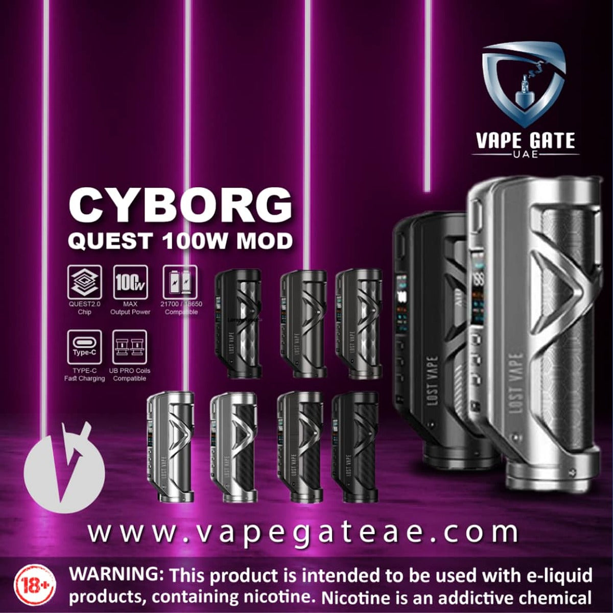 LOST VAPE CYBORG QUEST 100W MOD available to order Online from Vape Gate UAE with a unique Delivery service in UAE, Abu Dhabi, Dubai, Al Ain, Ras Al Khaimah, Ajman, Sharjah, Ruwais
