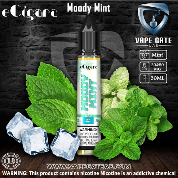 Moody Mint Saltnic by eCigara available to order Online from Vape Gate UAE with a unique Delivery service in UAE, Abu Dhabi, Dubai, Al Ain, Ras Al Khaimah, Ajman, Sharjah, Ruwais