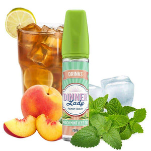 Peach Mint Iced Tea short-fill e-liquid by Dinner Lady is a beverage blend with a summer vibe. The light, sweet notes of peach are complemented by the floral flavor of tea, softened by the cool taste of menthol on exhale.