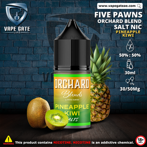 Whether you are looking for PINEAPPLE KIWI  - ORCHARD BLEND FRUIT SALTNIC BY FIVE PAWNS California here at Vape Gate UAE the best vape shop in Dubai, we can provide you with a massive collection of E-liquid and Saltnic for the Same Day Vape Delivery to Dubai, Abudhabi and Next Day vape Delivery to Sharjah, Fujairah Ajman, Ras Al Khaimah, Al Ain & Ruwais. with best vape price in Dubai.