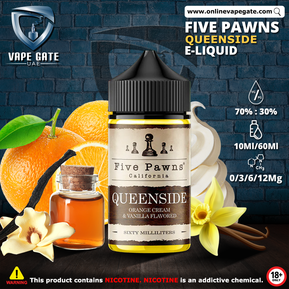 Queenside - 60ml E liquid by Five Pawns California available to order Online from Vape Gate UAE with a unique Delivery service in UAE, Abu Dhabi, Dubai, Al Ain, Ras Al Khaimah, Ajman, Sharjah, Ruwais
