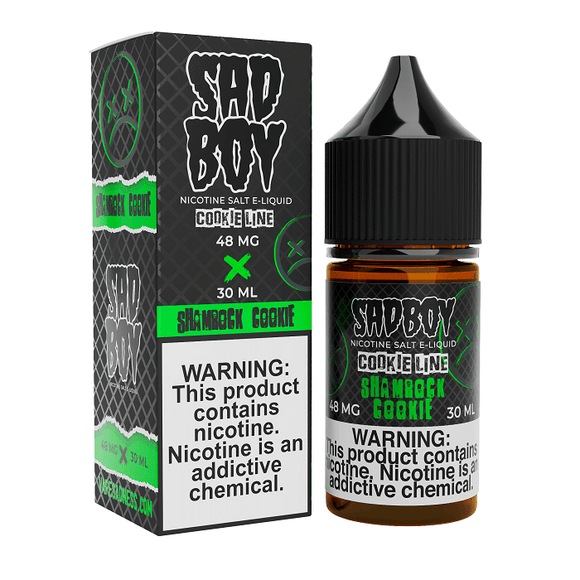 Shamrock Cookie 30ml by Sad Boy Salt,  Down on your luck? Shamrock Cookie will fix that. Like Sadboy’s Butter Cookie dipped into a refreshingly cool and creamy mint milkshake. With notes of a warm baked butter cookie right out of the oven which gets washed down with a cooling and frosty mint milkshake.