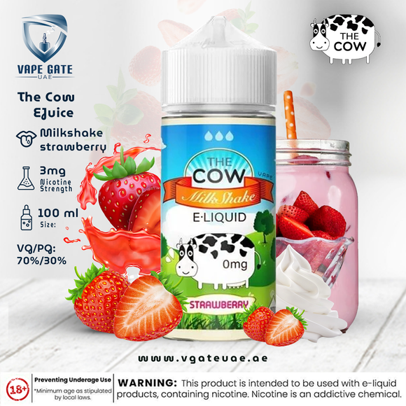 Strawberry Milkshake by The Cow EJuice -100ml available to order Online from Vape Gate UAE with a unique Delivery service in UAE, Abu Dhabi, Dubai, Al Ain, Ras Al Khaimah, Ajman, Sharjah, Ruwais