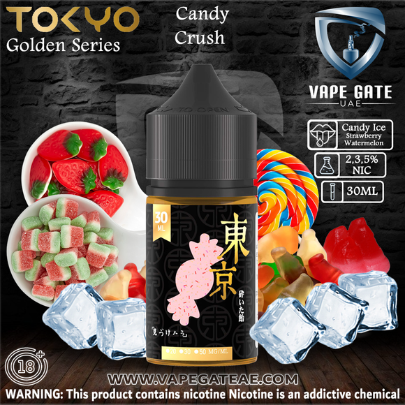 Tokyo Golden Series Candy Crush Saltnic 30ml is available to order Online from Vape Gate UAE with a unique Delivery service in UAE, Abu Dhabi, Dubai, Al Ain, Ras Al Khaimah, Ajman, Sharjah, Ruwais