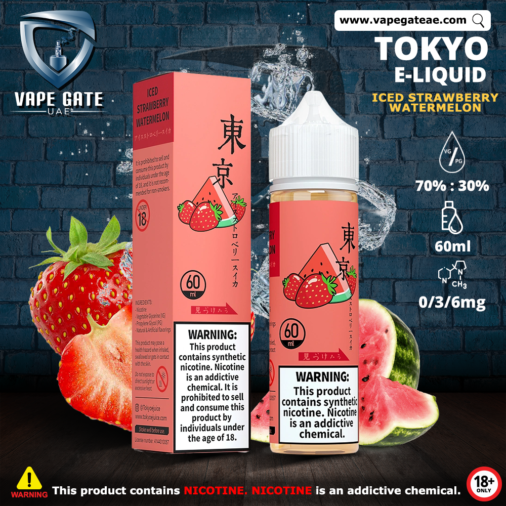 TOKYO Iced Strawberry Watermelon E-Liquid is available to order Online from Vape Gate UAE with a unique Delivery service in UAE, Abu Dhabi, Dubai, Al Ain, Ras Al Khaimah, Ajman, Sharjah, Ruwais