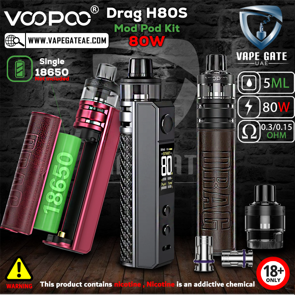 VOOPOO Drag H80S Mod Pod Kit (80W) available to order Online from Vape Gate UAE with a unique Delivery service in UAE, Abu Dhabi, Dubai, Al Ain, Ras Al Khaimah, Ajman, Sharjah, Ruwais.