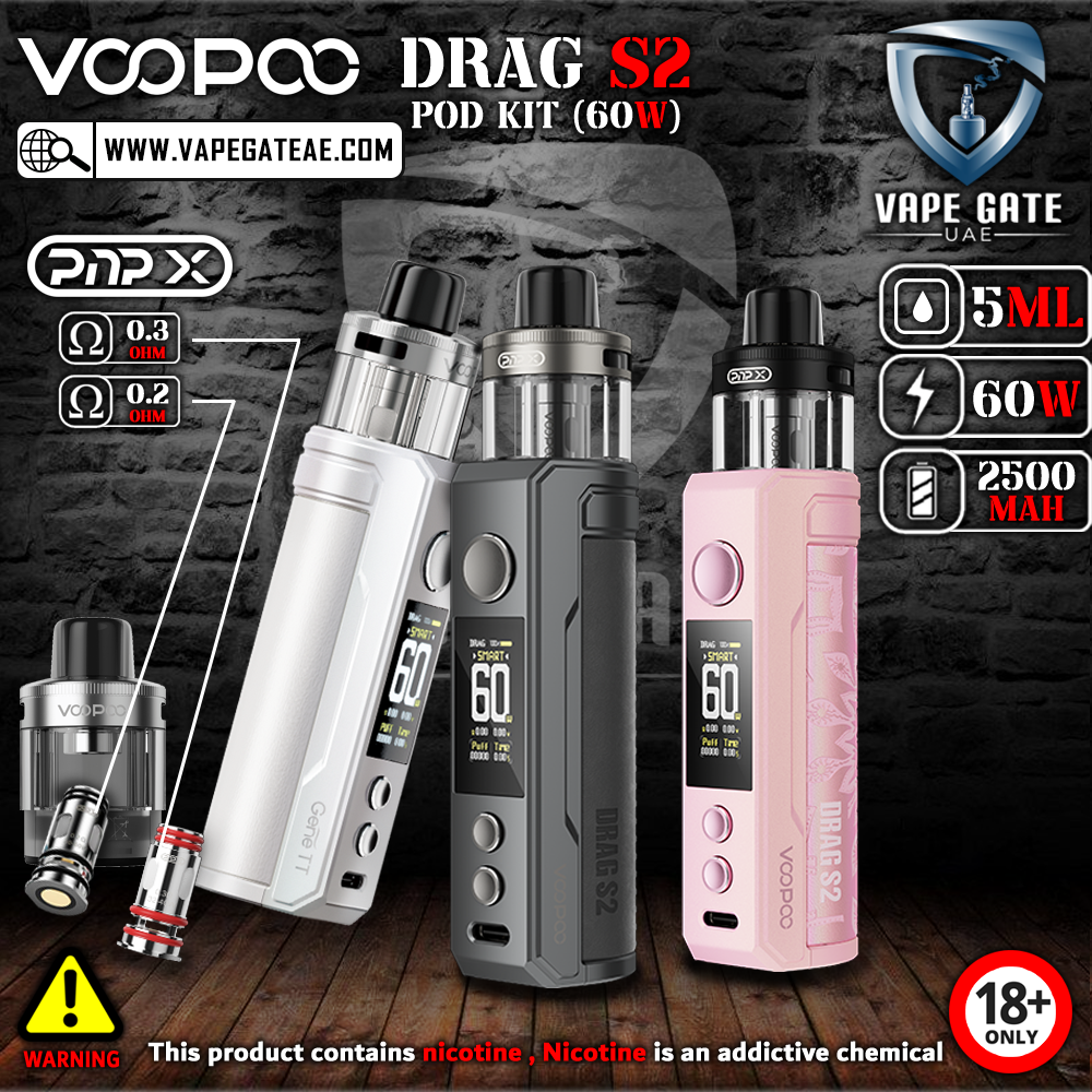 VOOPOO Drag S2 Pod Kit (60W) 2500mAh available to order Online from Vape Gate UAE with a unique Delivery service in UAE, Abu Dhabi, Dubai, Al Ain, Ras Al Khaimah, Ajman, Sharjah, Ruwais.