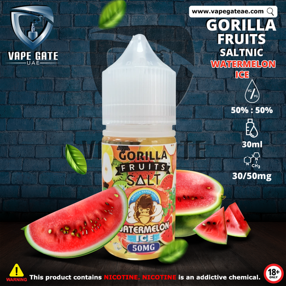 Watermelon Ice Gorilla Fruits SaltNic by E&B Flavor is available to order Online from Vape Gate UAE with a unique Delivery service in UAE, Abu Dhabi, Dubai, Al Ain, Ras Al Khaimah, Ajman, Sharjah, Ruwais