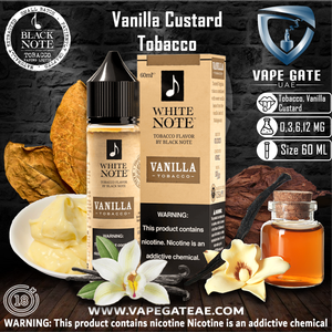 Whether you are looking for WHITE NOTE - Vanilla Custard Tobacco 60ml or other E liquid made by Black Note here at Vape Gate UAE we can Provide you a massive collection of E liquid and Saltnic with best prices in UAE, Same Day Delivery in Abu Dhabi and next Day Delivery to Dubai, Sharjah, Ajman, Ras Al Khaimah, Al Ain & Ruwais .