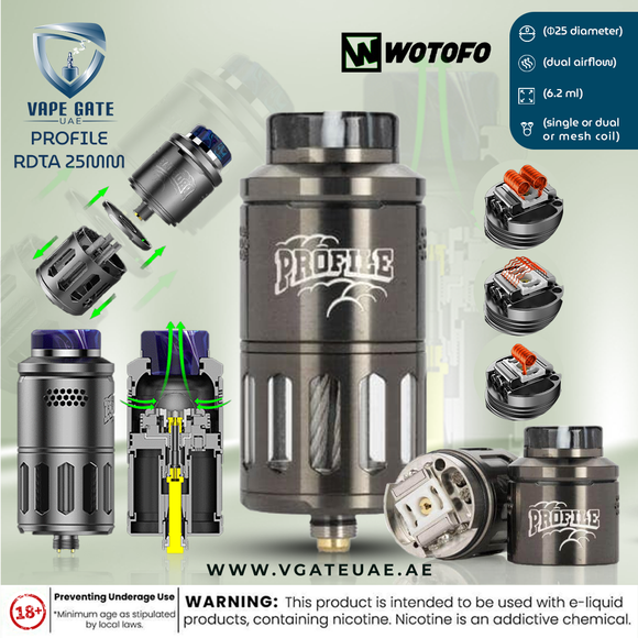 Wotofo Profile RDTA 25mm available to order Online from Vape Gate UAE with a unique Delivery service in UAE, Abu Dhabi, Dubai, Al Ain, Ras Al Khaimah, Ajman, Sharjah, Ruwais Â